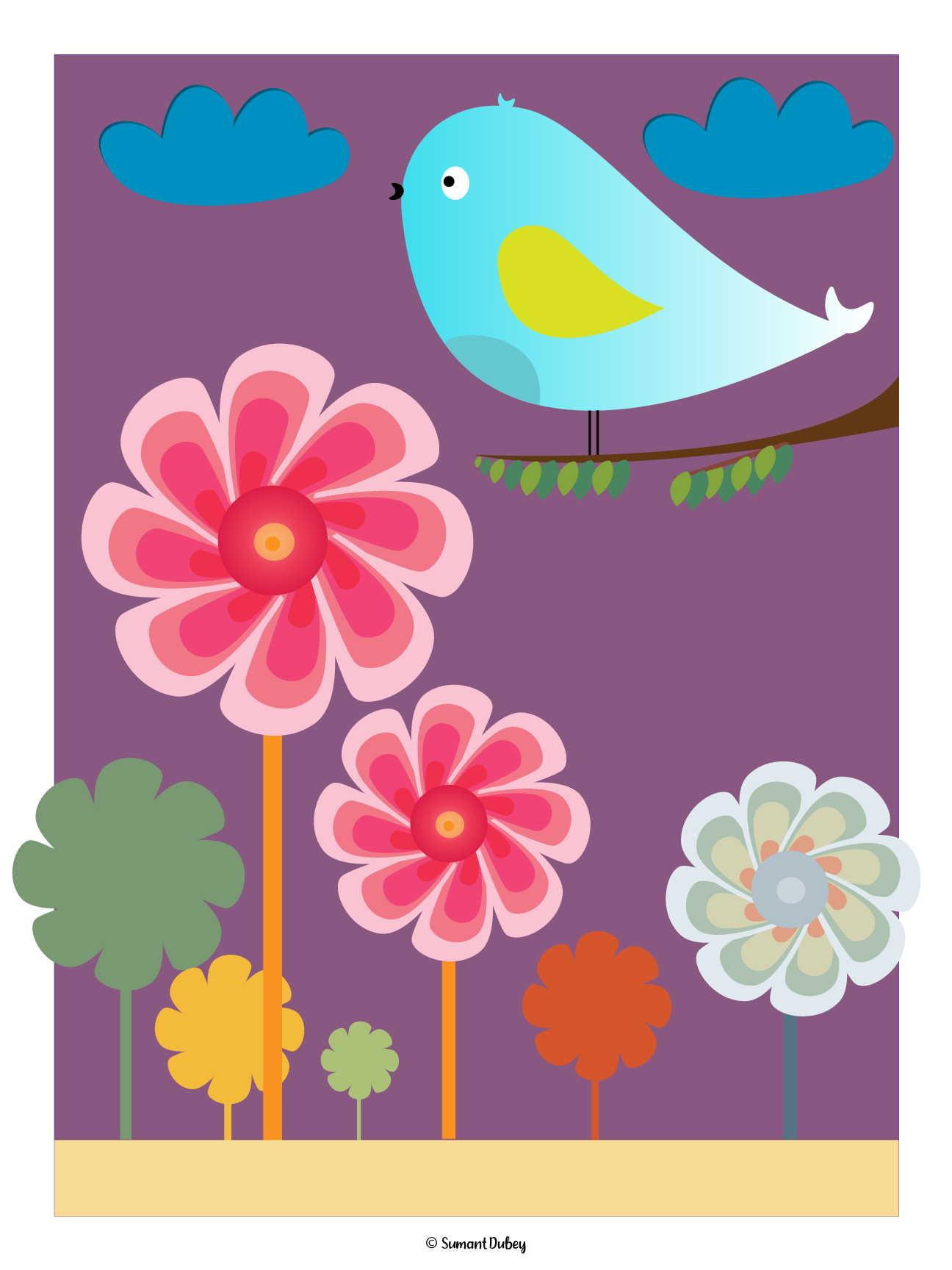 Birdie & Flowers Poster